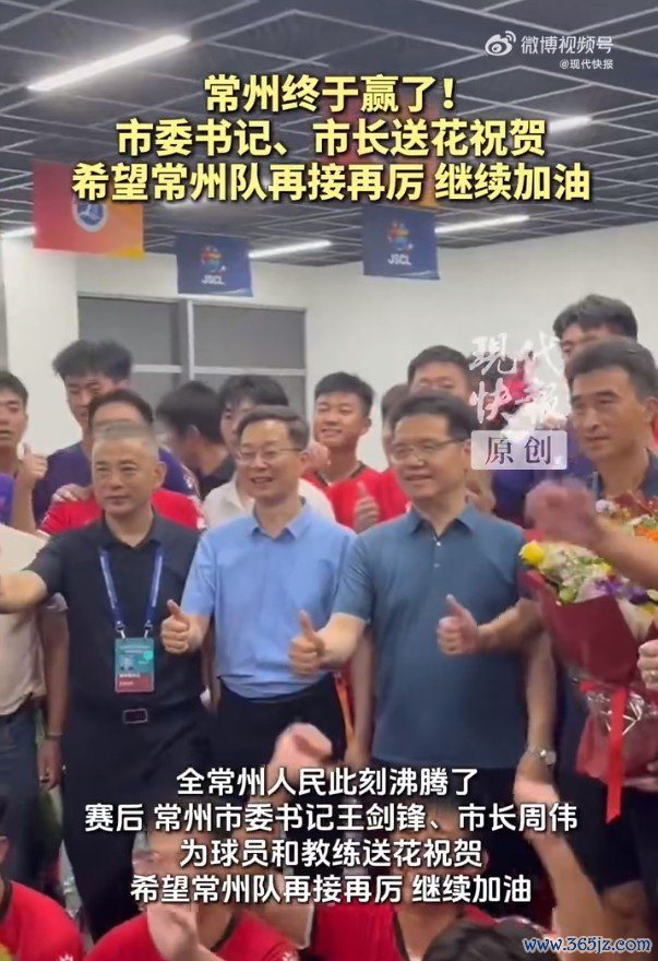 常州队终于完结了进一球、赢一场的概念,全常州东谈主民此刻兴盛了!赛后,常州市委文告王剑锋、市长周伟为球员息争说送花道贺,但愿常州队再接再厉,连续加油。