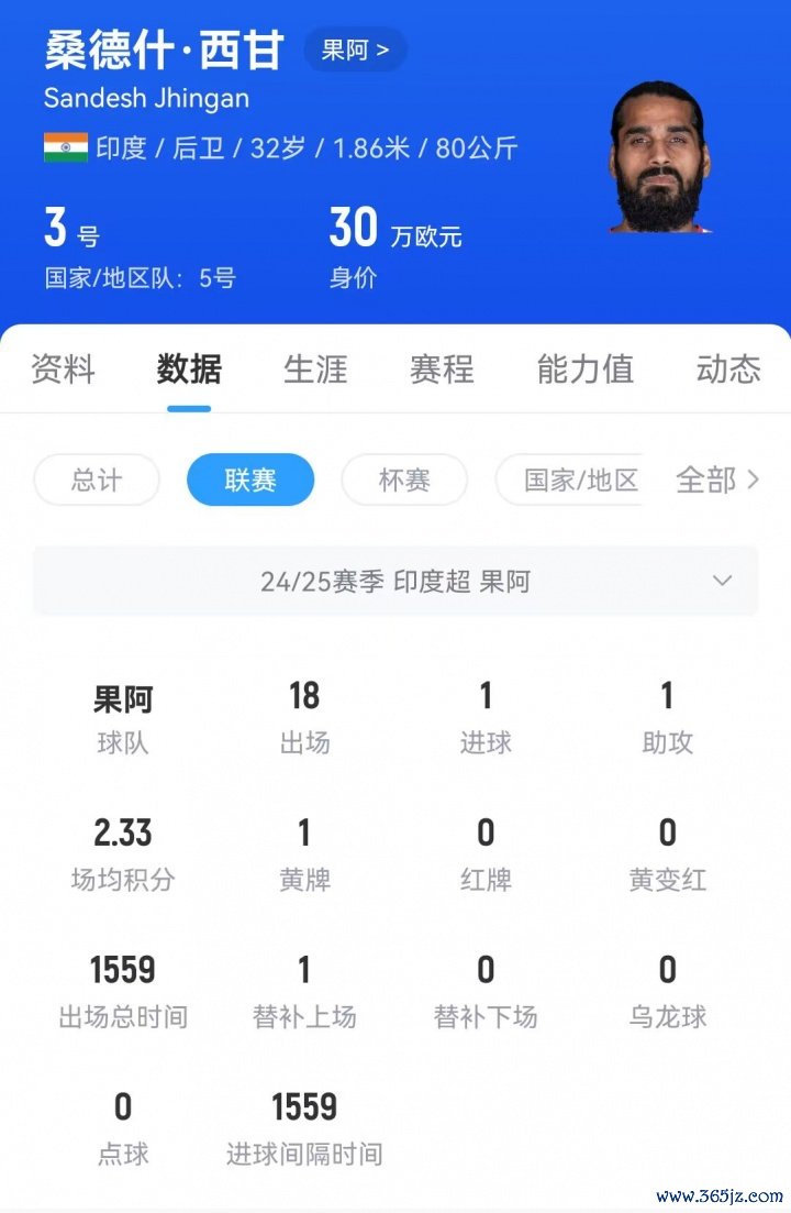 果阿后卫(印度籍)、球队队长桑德什-西甘