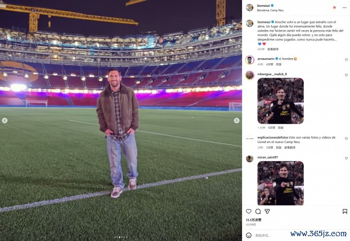 11月10日讯 梅西在个东谈主社媒晒照并发文,暗示我方参不雅了巴萨改良后的诺坎普球场。