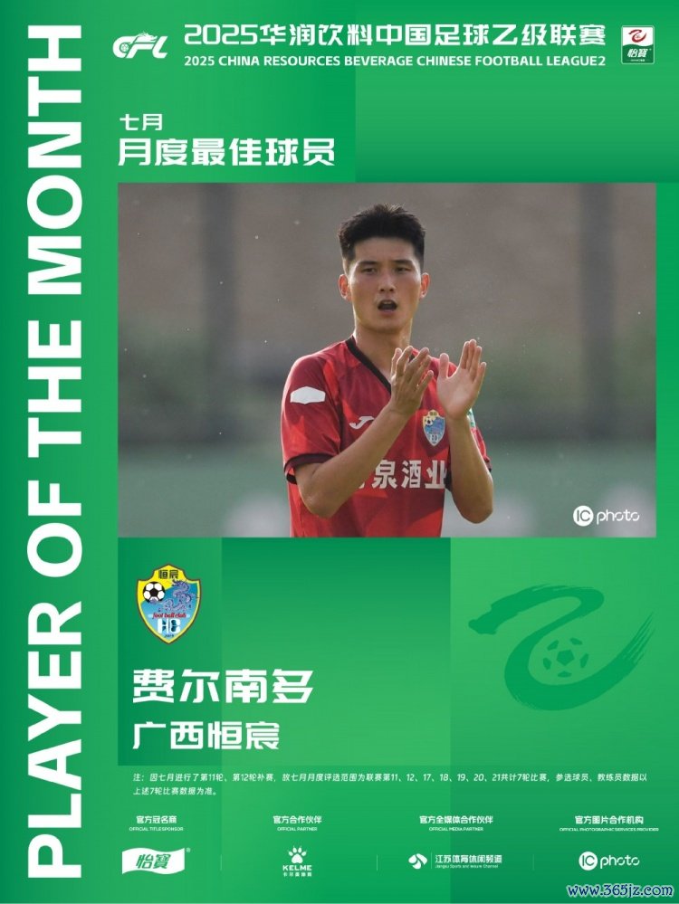 8月21日讯 近日,中乙联赛公布了7月最好球员名单,本赛季由上海申花租出加盟广西恒宸足球俱乐部的先锋费尔南多见效当选。在2025赛季中乙联赛7月的赛事中,广西恒宸 7场全胜,费尔南多在这7场比赛中狂轰8球,并3度当选单场最好。据记者杨翼报谈,费尔南多在领受采访时谈到了我方的感受。