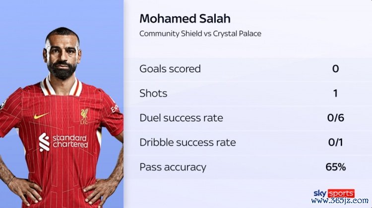 8月11日讯 社区盾杯比赛,萨拉赫踢满全场未能破门,并在点球大战中罚丢,最终利物浦不敌水晶宫,无缘冠军。