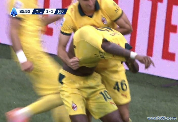 10月20日讯 米兰vs佛罗伦萨,第86分钟莱奥点球破门助米兰反超,之后他思脱衣庆祝,被加比亚按住了!