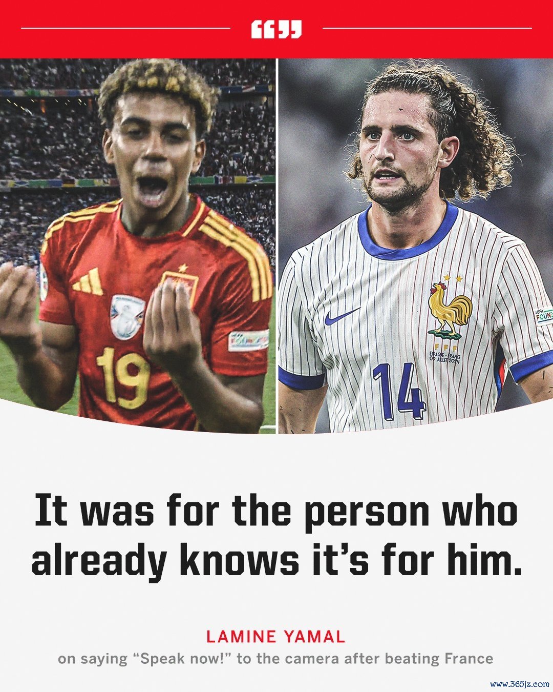 而在一年前的欧洲杯半决赛,亚马尔也与敌手产生争端。法国中场拉比奥特赛前暗示不成让亚马尔踢得平稳,要让他知谈思进决赛必须作念得更多。