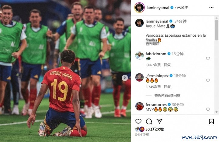 随后在那场欧洲杯半决赛中,亚马尔一记天下波颜射拉比奥特,匡助西班牙2-1淘汰法国。亚马尔赛后也对着镜头高歌“咫尺讲话!咫尺讲话!”