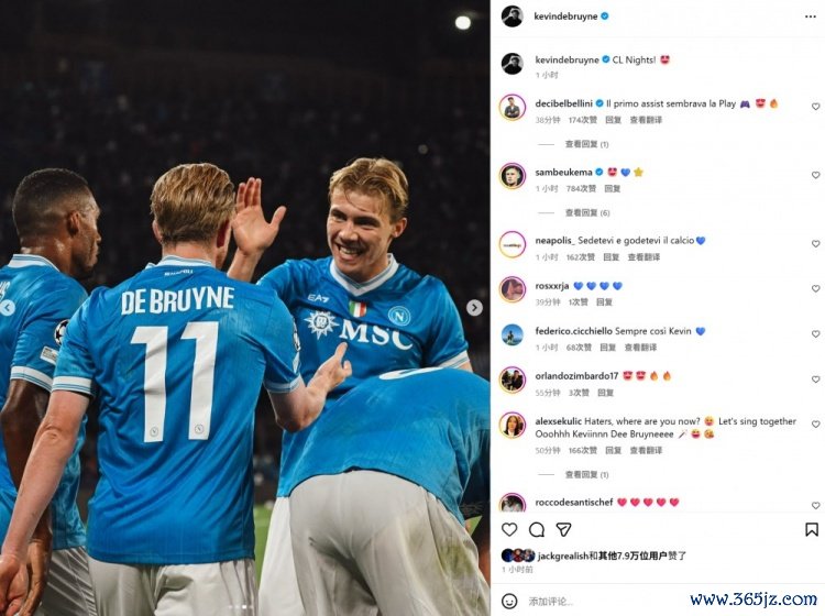 曼市连线两度献技,德布劳内社媒晒与霍伊伦庆祝照:欧冠之夜!