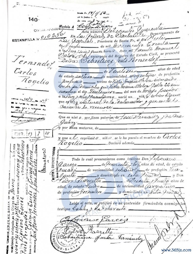 圣达菲省民事登记处原始文献阐发了FIFA的走访成果。文献涌现,加尔塞斯的祖父如实出身于1930年5月29日,但场地并非马来西亚槟城,而是距离槟城1.4万多公里外的阿根廷圣达菲市的一个社区。