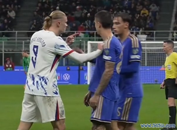 随后挪威准备主罚任性球,哈兰德与曼奇尼再次发生冲破,哈兰德的曼城队友多纳鲁马抱着他尝试劝架,但两边球员执续斗嘴,最终哈兰德和埃斯波西托各吃一张黄牌。而在争执之后仅过了10分钟,哈兰德2分钟2球反超比分。