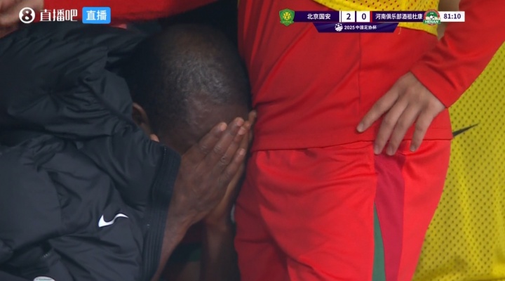 表情崩溃!阿奇姆彭被换下后坐在替补席捂脸悲泣,队友束缚抚慰。