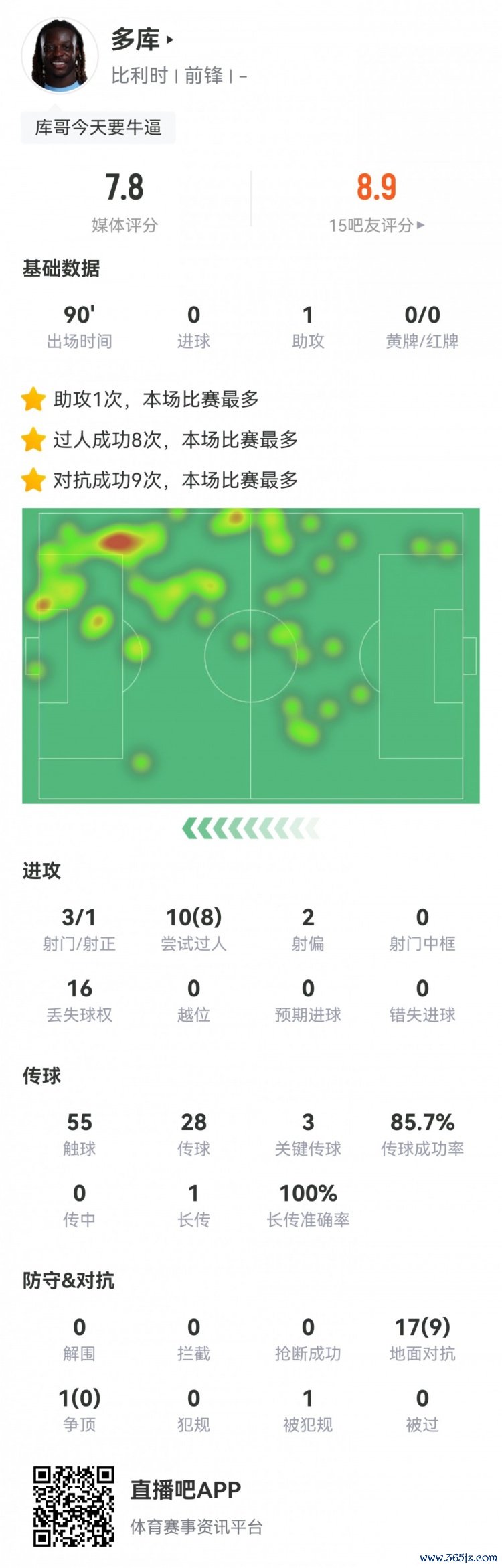 据媒体数据统计,多库在本次天下杯欧洲区预选赛中完成34次冲突,比其他任何球员至少多出15次。
