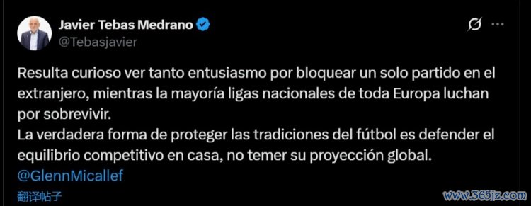 10月22日讯 不久前,西甲主席特巴斯更新了酬酢媒体,对比利亚雷亚尔vs巴萨的国际西甲遭到取消一事发表批驳。