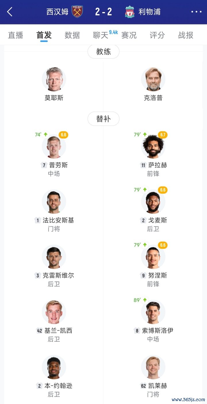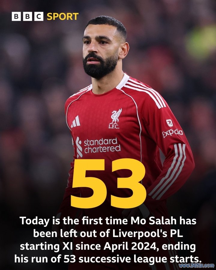 萨拉赫上一次在英超比赛中替补,依然2024年4月27日利物浦2-2战平西汉姆联,其时利物浦依然克洛普握教,萨拉赫下半场比赛替补登场。而后53场英超联赛,萨拉赫系数首发。